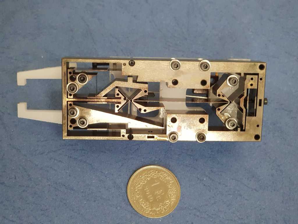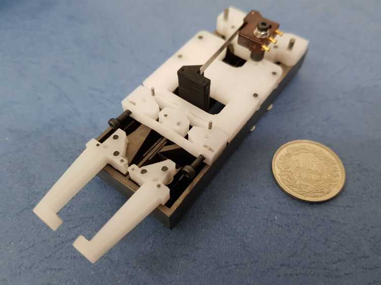 By using shape memory alloys the gripper has been miniaturised and fits into a foot print of 110x34x26 mm.