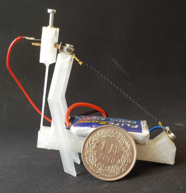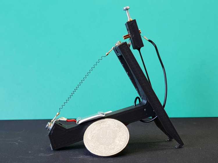 Due to the mechanics within the robot, no microcontroller is required. Using just a battery, the robot is able to crawl. The robot is able to crawl without any tether and including the battery, weighs less than 10g.