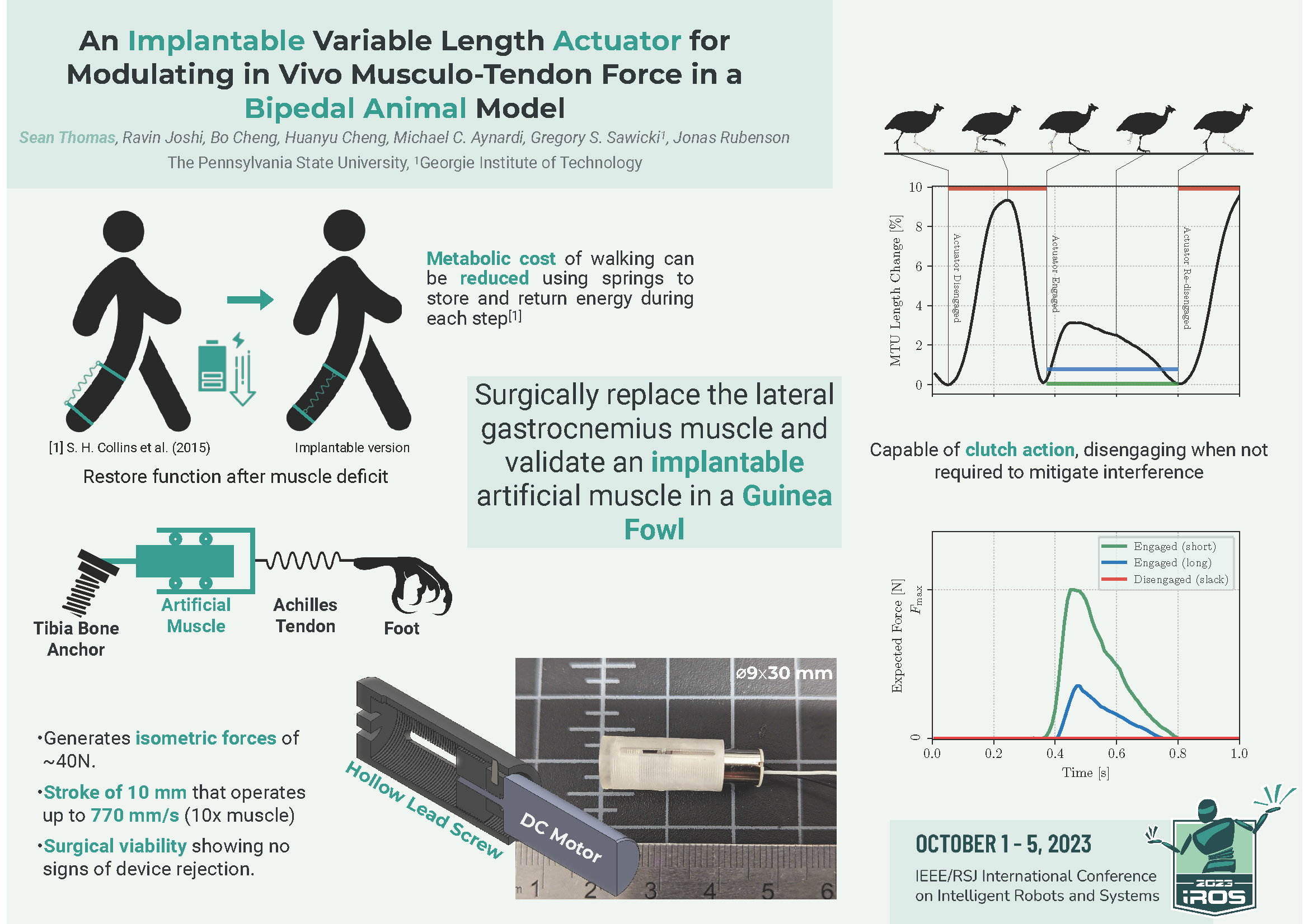 Using a cheap simple DC motor and some 3D printed parts, we have created a variable length actuator that can be implanted within the leg for gait rehab.